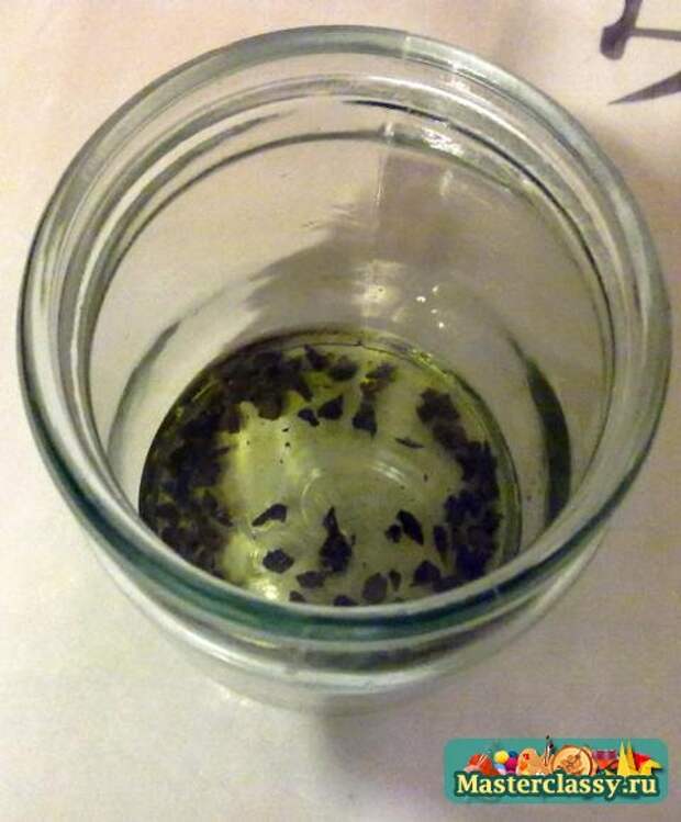 Измельчив ножом прополис я залила его оливковым маслом первого холодного отжима. На следующий день (можно через сутки-двое) я поместила банку с прополисом и маслом на водяную баню. Прополис довольно плотное вещество, даже после полутора часов, проведенных на водяной бане, он не растворился и не смешался с оливковым маслом, а стал лишь рыхлым на вид.